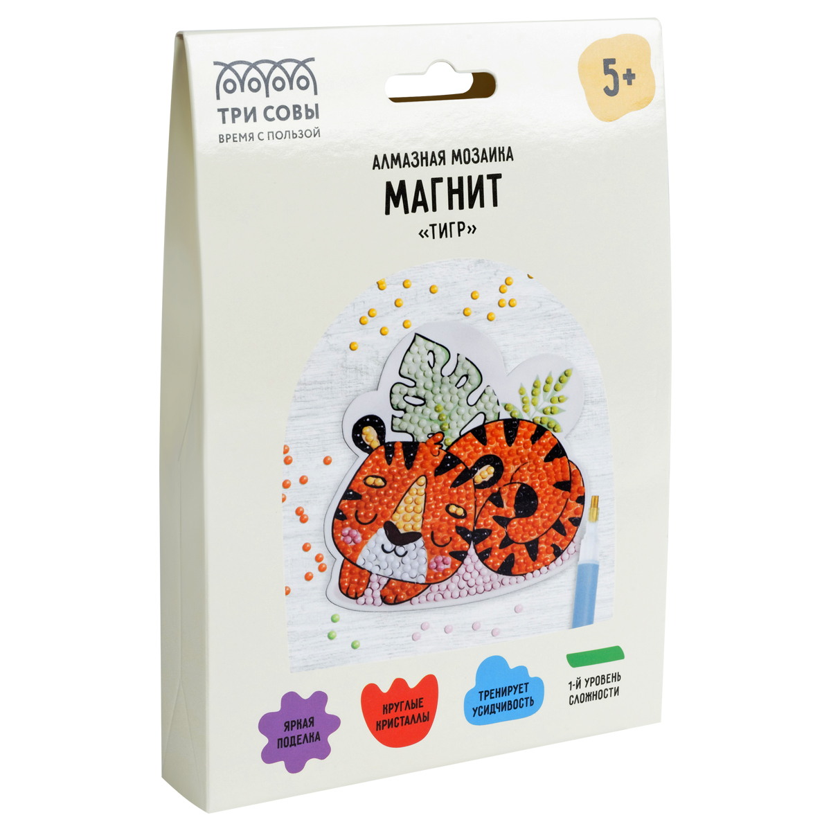 Алмазная мозаика, магнит ТРИ СОВЫ «Тигр», картонный конверт