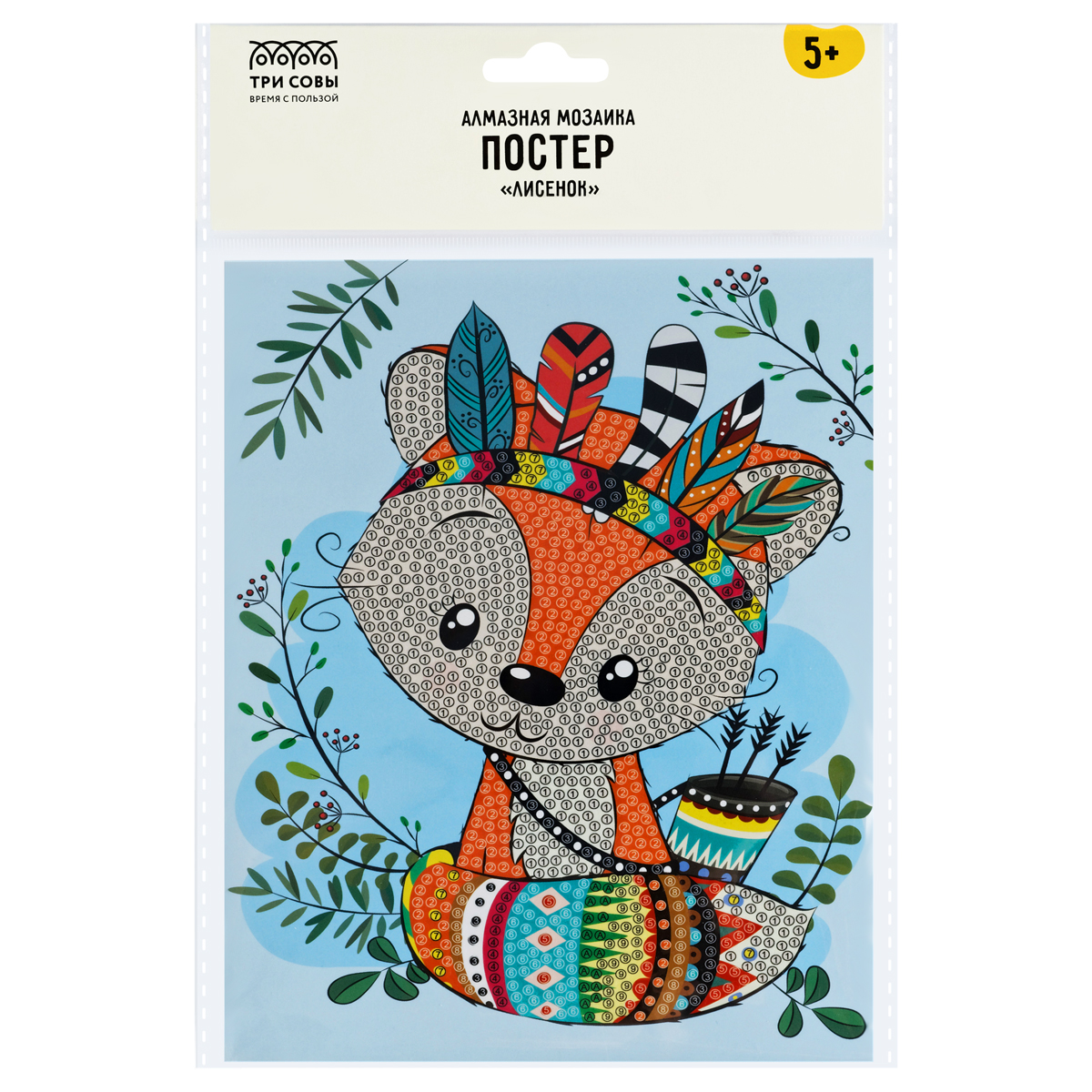 Алмазная мозаика, постер ТРИ СОВЫ «Лисенок», пакет с европодвесом