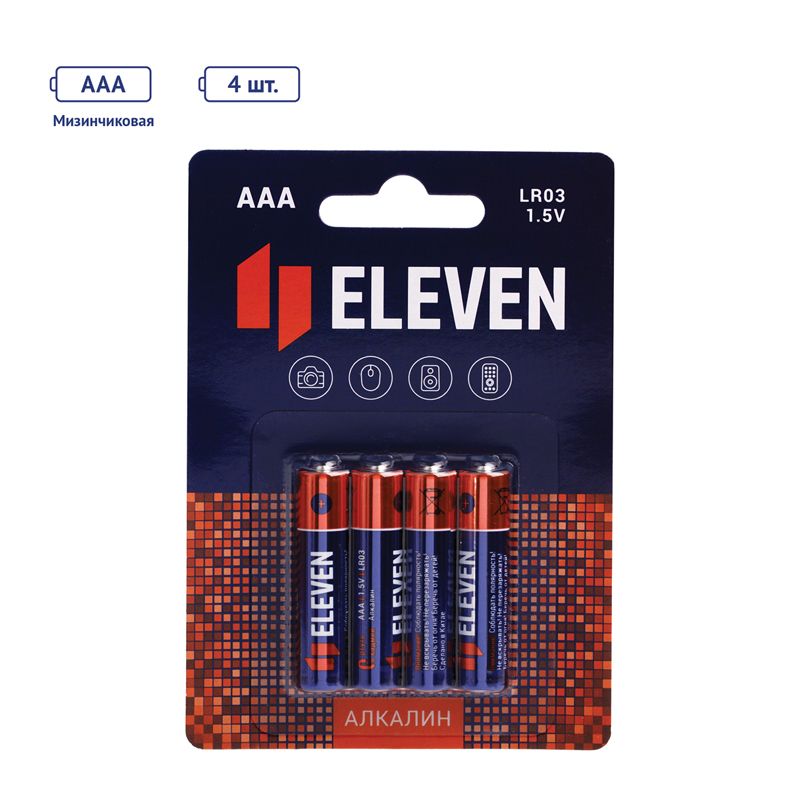 Батарейка Eleven AAA (LR03) алкалиновая, BC4, КОМПЛЕКТ 4 шт.