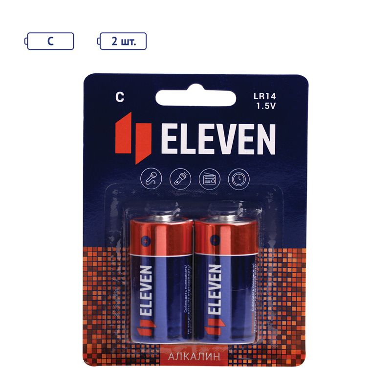 Батарейка Eleven C (LR14) алкалиновая, BC2, КОМПЛЕКТ 2 шт.