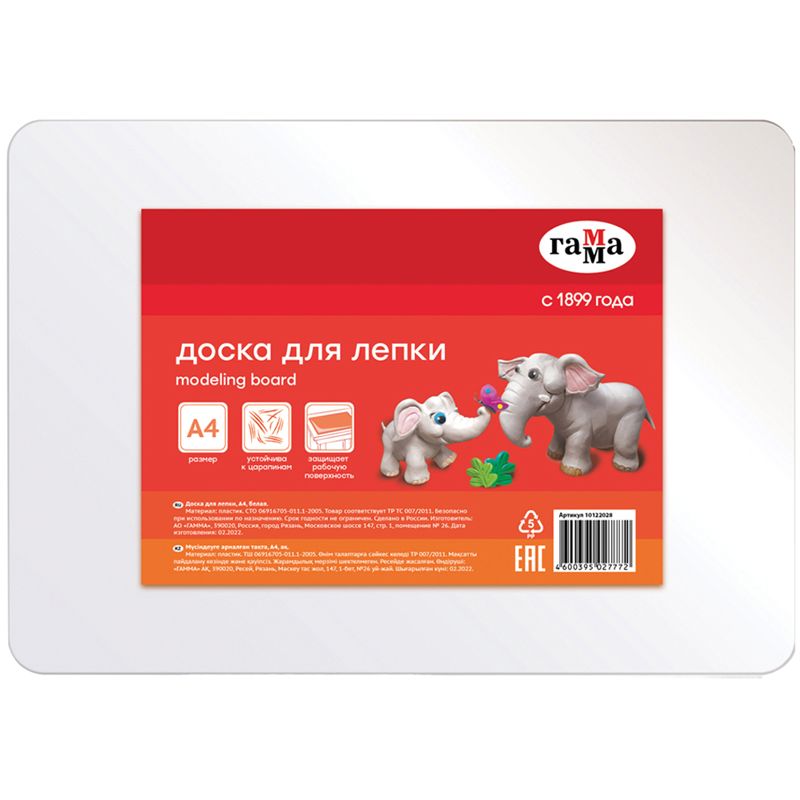 Доска для лепки изготовлена из пластика белого цвета, материал устойчив к царапинам. Упакована в термоусадочную пленку с ярким вкладышем.