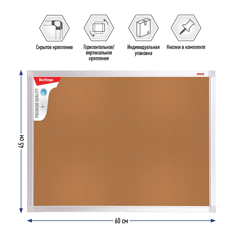 Доска пробковая 45*60см Berlingo «Premium»,алюминиевая рамка
