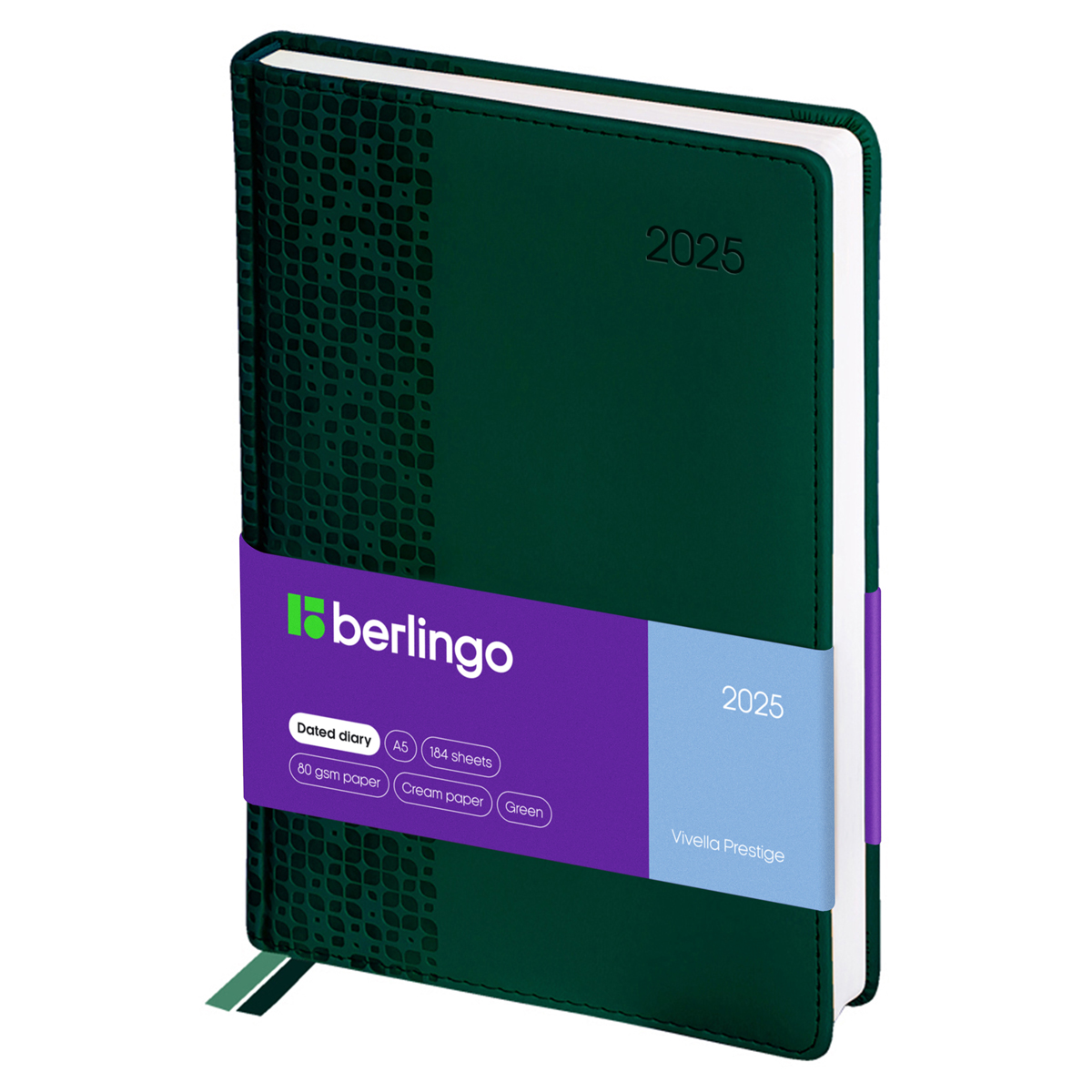 Ежедневник датированный 2025г., А5, 184л., кожзам, Berlingo «Vivella Prestige», зеленый