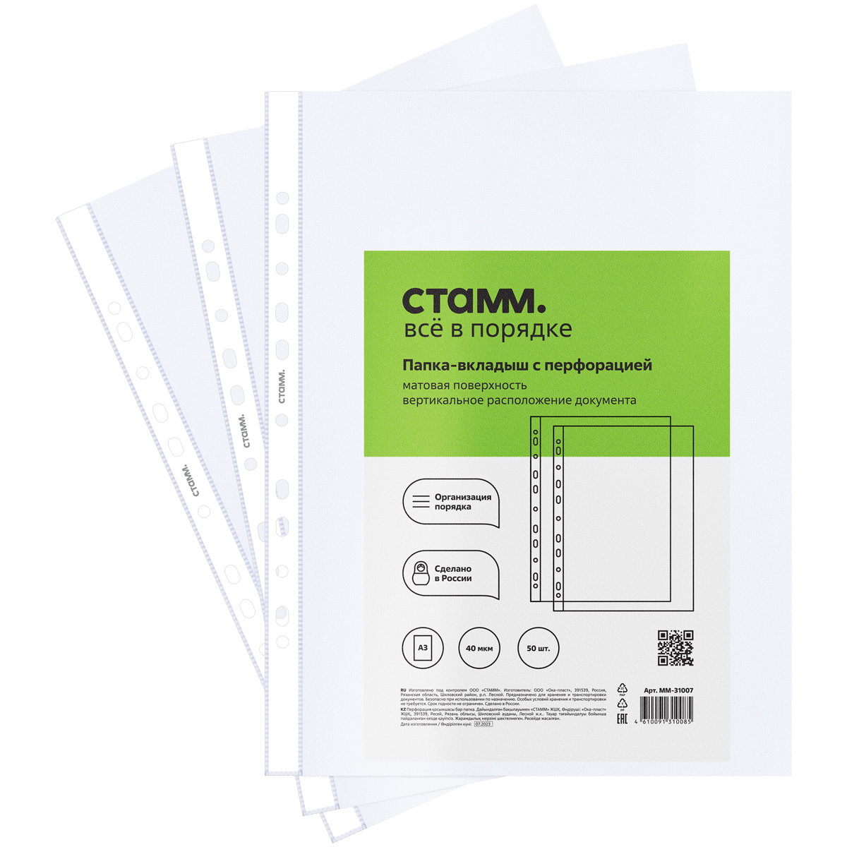 Файл А3, 40мкм СТАММ, КОМПЛЕКТ 50 штук, матовые, вертикальные