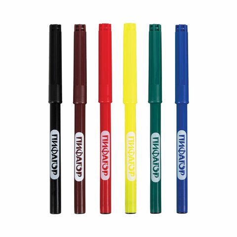 Обладают яркими цветами в количестве 6 штук. Длина корпуса удобной круглой формы составляет 145 мм, а диаметр - 8 мм. Благодаря толщине линии письма 1 мм и диаметру пишущего узла 1,8 мм процесс раскрашивания становится легким.