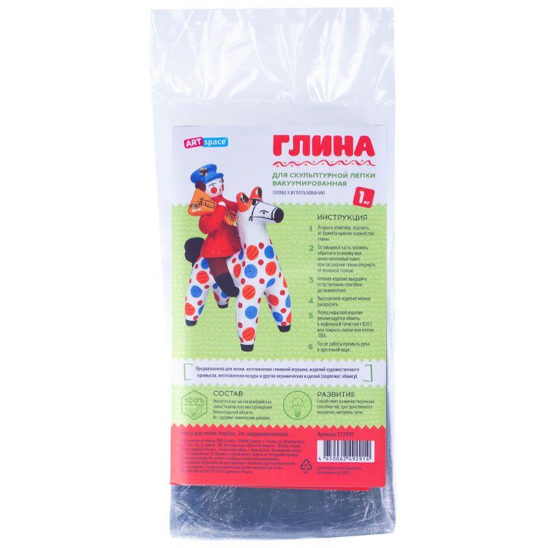 Глина для лепки красная ArtSpace, голубая, 1кг, вакуумный пакет