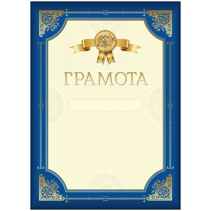 Грамота А4, BG, мелованный картон, синяя с золотой рамкой