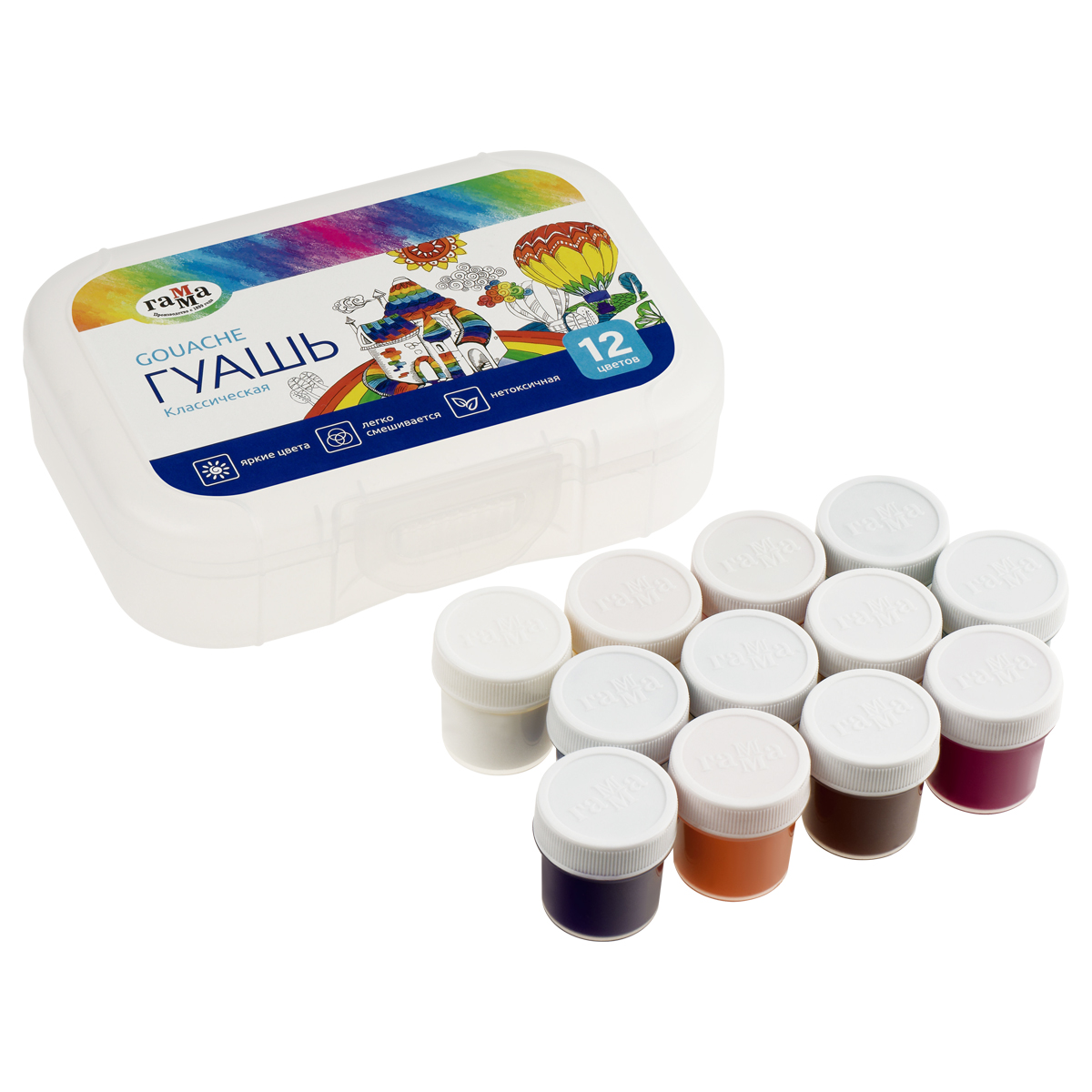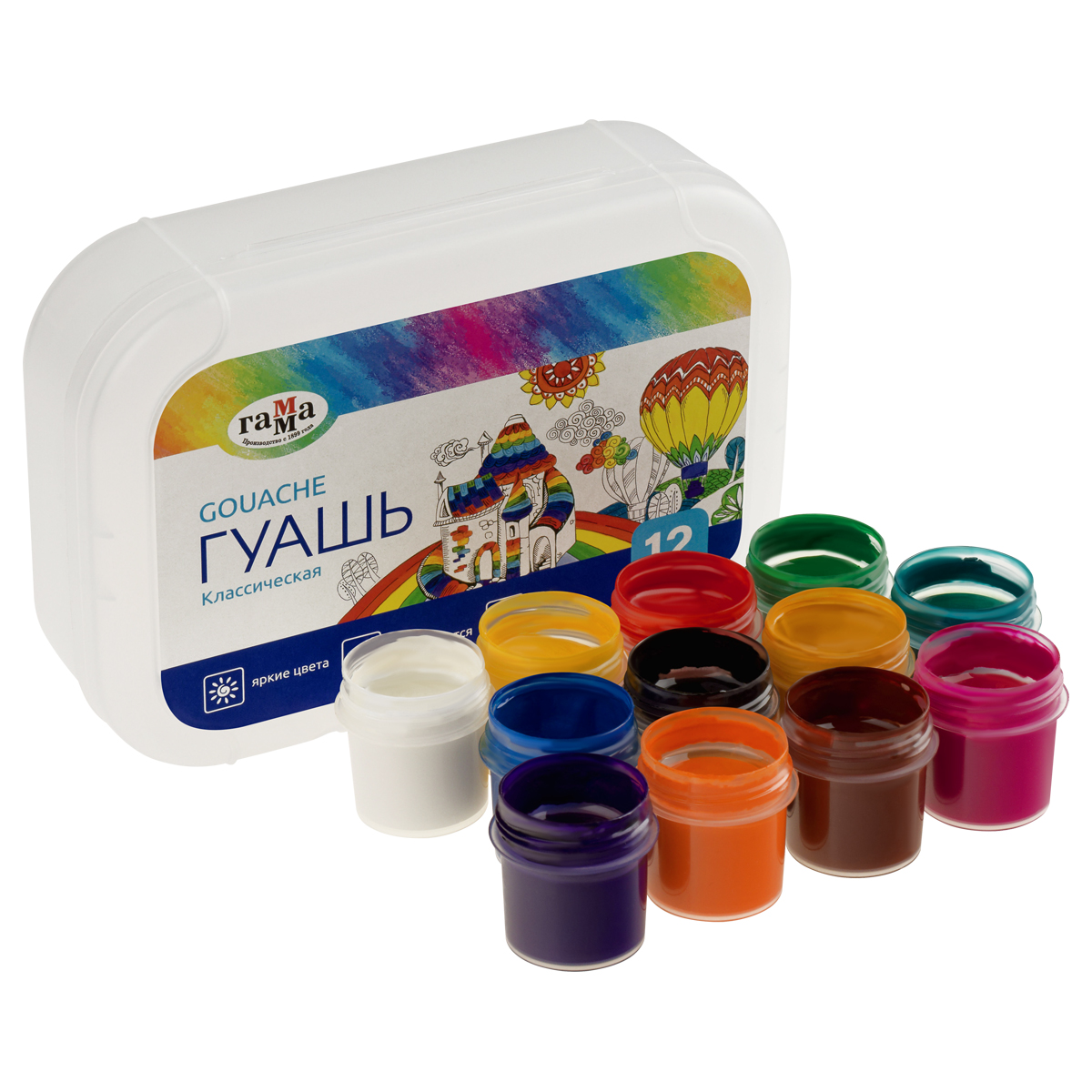 Гуашь 12 цветов, 20мл Гамма «Классическая» , пластиковый бокс 20251103