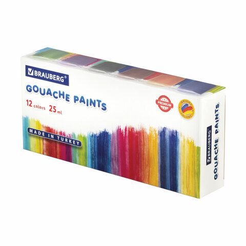 Гуашь 12 цветов по 25 мл BRAUBERG «PREMIUM», картонная упаковка