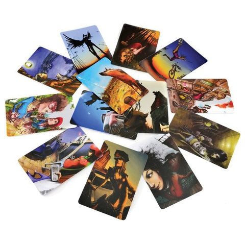 В наборе огромное количество карточек с самыми невообразимыми рисунками, на которых словно бы запечатлены чьи-то фантастические сны.