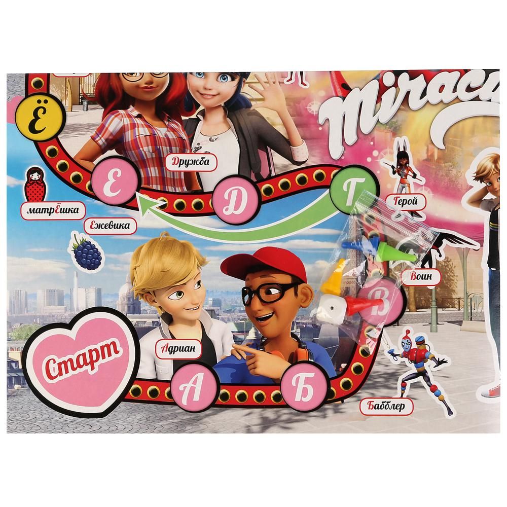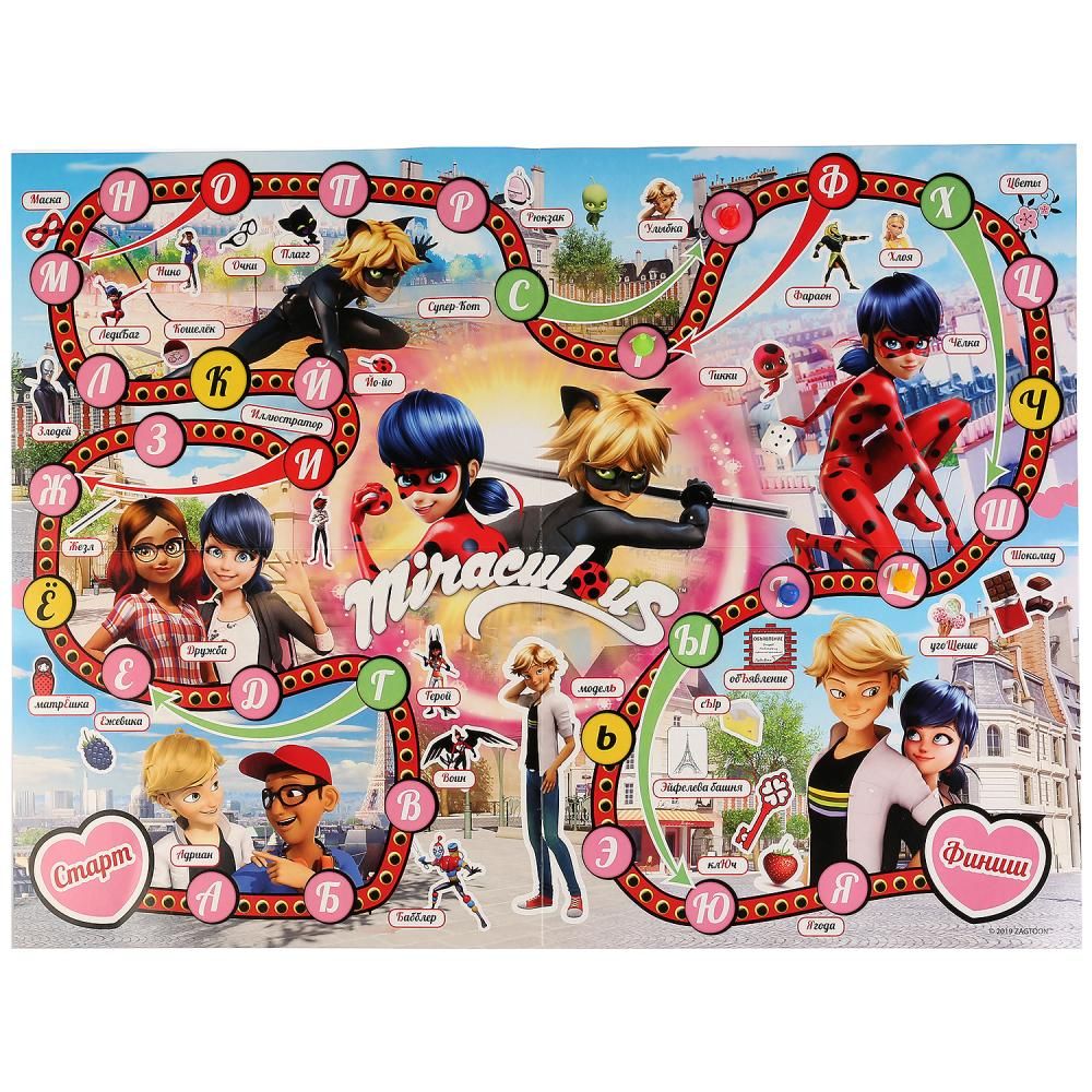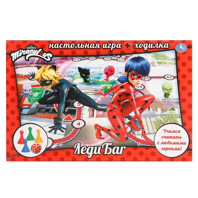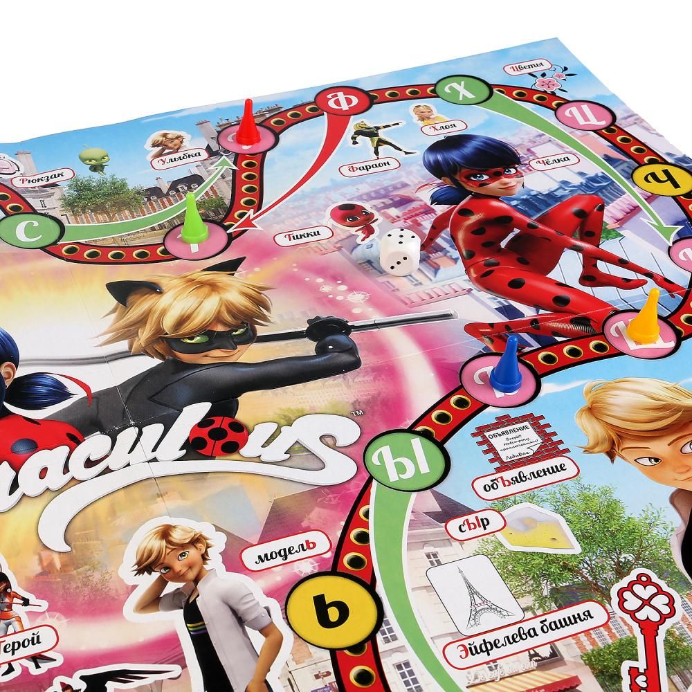 Настольная игра "Леди Баг" создана по мотивам известного мультсериала. В набор входит большое картонное поле, 4 фишки для игроков и 1 кубик.