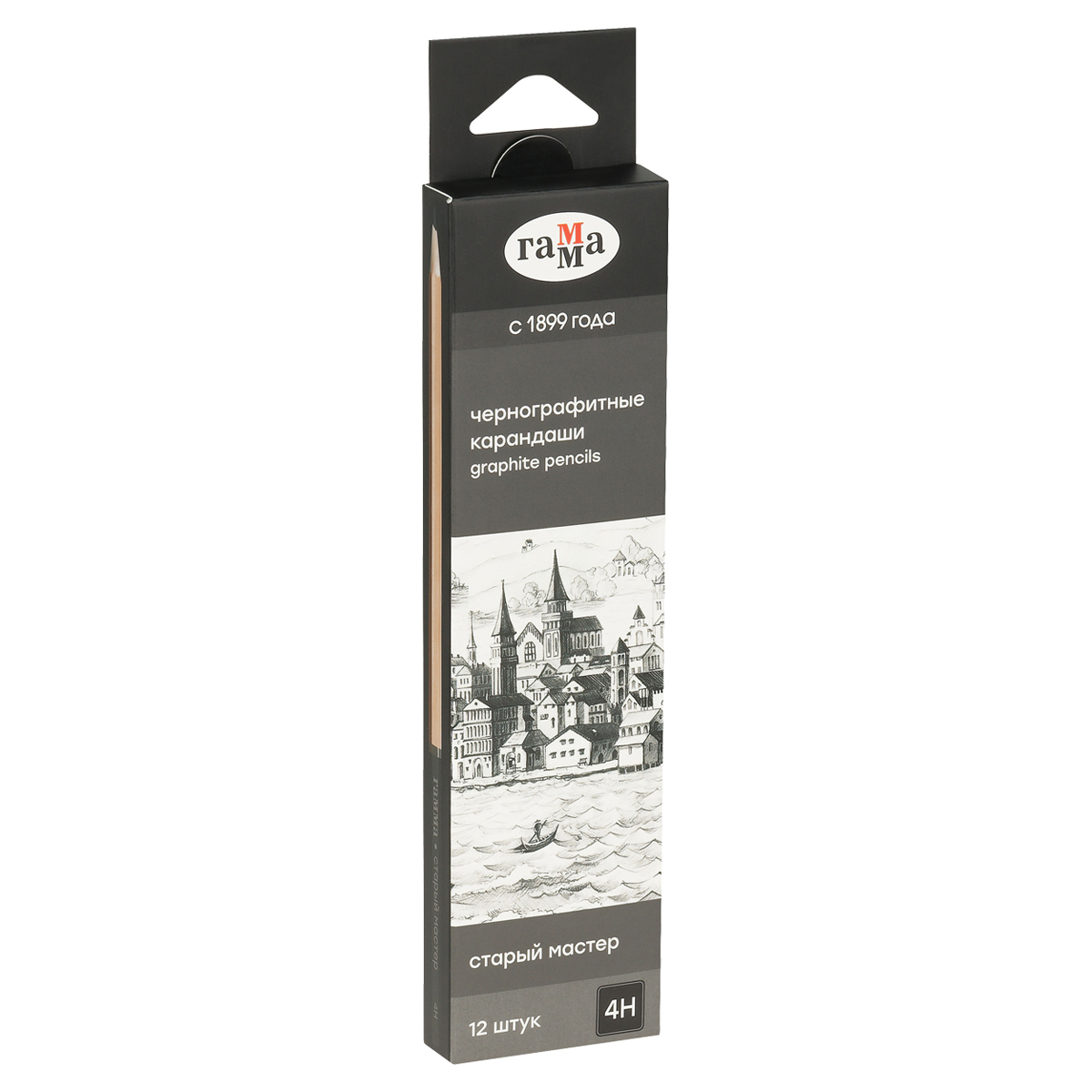 Чернографитные карандаши ГАММА серии «Старый мастер» твёрдостью 4H предназначены для рисования, скетчинга и черчения на бумаге и картоне. Диаметр грифеля – 2 мм. Карандаши «Старый мастер» выпускаются в 20 различных степенях твердости: от 8H до 10B, поэтому идеально подойдут как для художников, иллюстраторов, так и для архитекторов и инженеров. Карандаши упакованы в картонную коробку по 12 штук.