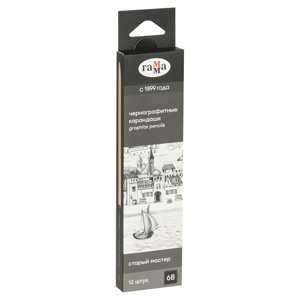 Чернографитные карандаши ГАММА серии «Старый мастер» твёрдостью 6B предназначены для рисования, скетчинга и черчения на бумаге и картоне. Диаметр грифеля – 2,8 мм. Карандаши «Старый мастер» выпускаются в 20 различных степенях твердости: от 8H до 10B, поэтому идеально подойдут как для художников, иллюстраторов, так и для архитекторов и инженеров. Карандаши упакованы в картонную коробку по 12 штук.