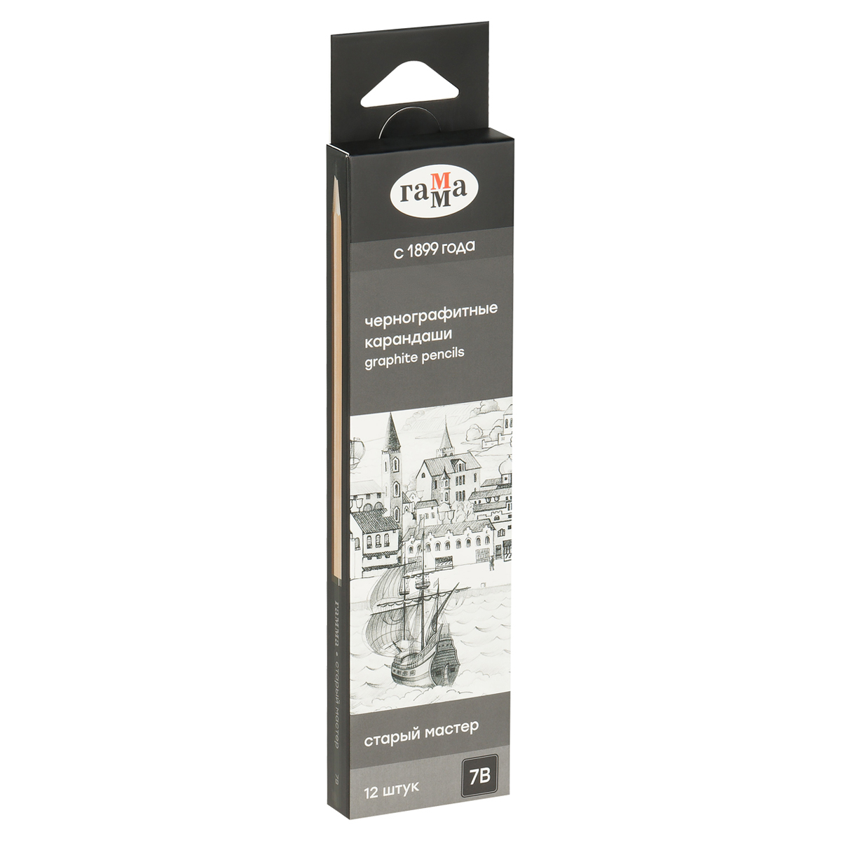 Чернографитные карандаши ГАММА серии «Старый мастер» твёрдостью 7B предназначены для рисования, скетчинга и черчения на бумаге и картоне. Диаметр грифеля – 2,8 мм. Карандаши «Старый мастер» выпускаются в 20 различных степенях твердости: от 8H до 10B, поэтому идеально подойдут как для художников, иллюстраторов, так и для архитекторов и инженеров. Карандаши упакованы в картонную коробку по 12 штук.