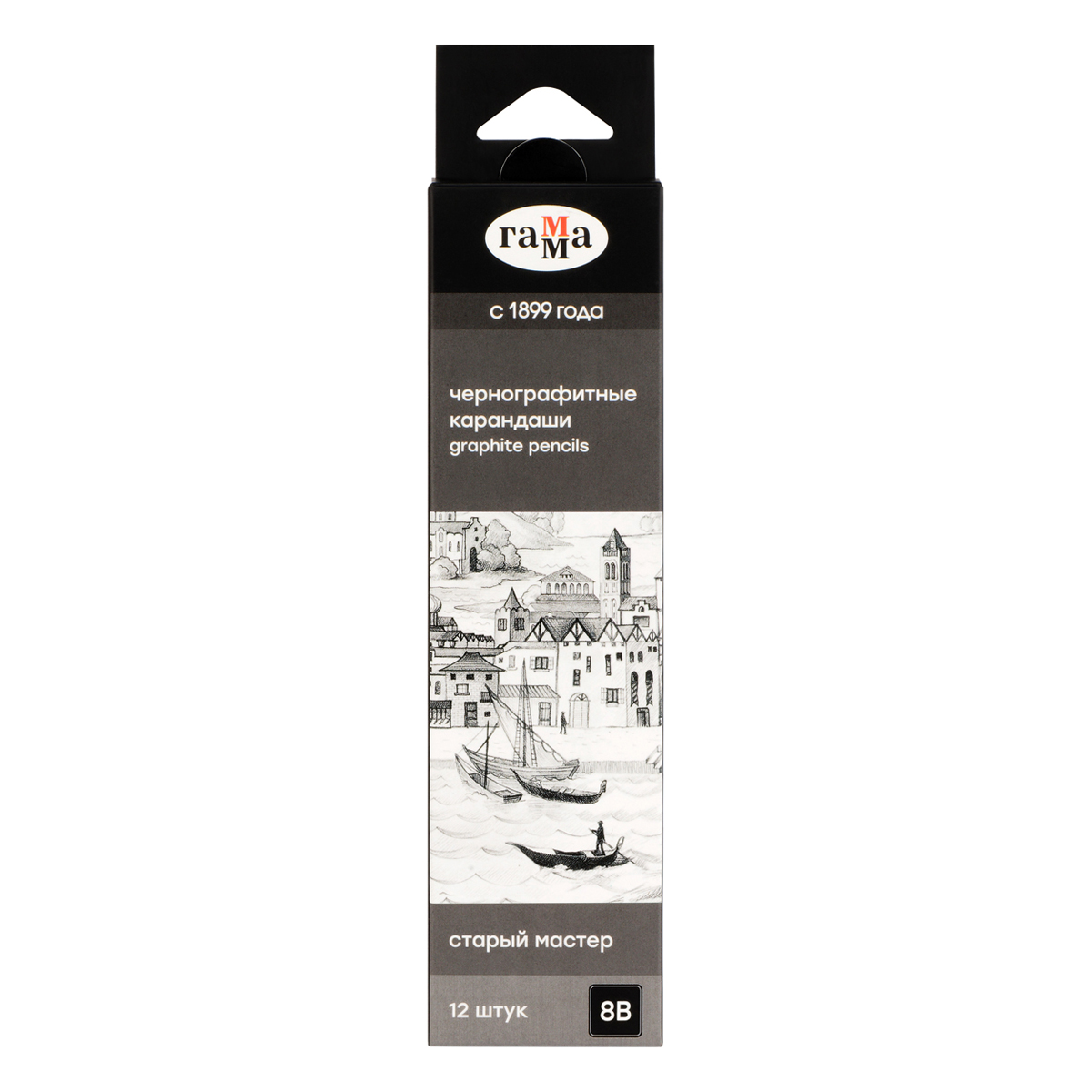 Чернографитные карандаши ГАММА серии «Старый мастер» твёрдостью 8B предназначены для рисования, скетчинга и черчения на бумаге и картоне. Диаметр грифеля – 3,9 мм. Карандаши «Старый мастер» выпускаются в 20 различных степенях твердости: от 8H до 10B, поэтому идеально подойдут как для художников, иллюстраторов, так и для архитекторов и инженеров. Карандаши упакованы в картонную коробку по 12 штук.