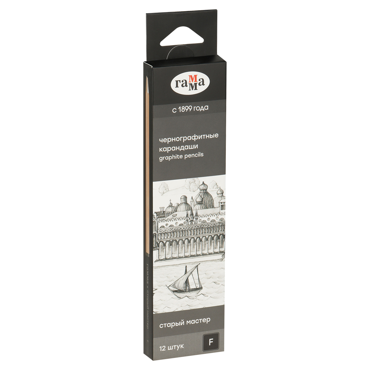 Чернографитные карандаши ГАММА серии «Старый мастер» твёрдостью F предназначены для рисования, скетчинга и черчения на бумаге и картоне. Диаметр грифеля – 2 мм. Карандаши «Старый мастер» выпускаются в 20 различных степенях твердости: от 8H до 10B, поэтому идеально подойдут как для художников, иллюстраторов, так и для архитекторов и инженеров. Карандаши упакованы в картонную коробку по 12 штук.