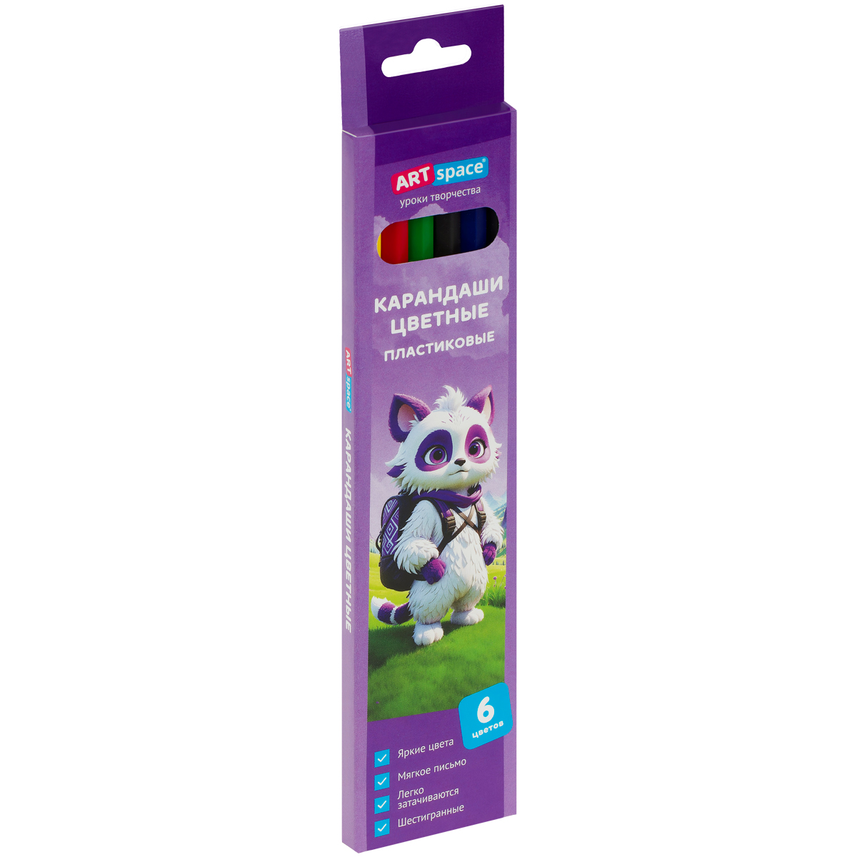 Карандаши цветные пластиковые ArtSpace «Отважная команда» отлично подходят для домашнего рисования, школы и дополнительных образовательных кружков. В наборе 6 цветов: жёлтый, красный, зелёный, чёрный, коричневый, синий. Яркие цвета позволяют развивать и реализовывать неограниченные фантазии юного художника. Мягкий грифель помогает добиться высокой насыщенности цвета. Рисование цветными карандашами способствует формированию творческих способностей, развитию воображения и образного мышления. Идеальны для рисования на бумаге. Пластиковый корпус затачивается без усилий и не оставляет заноз. Традиционная шестигранная форма легкая и удобная для руки ребенка. Безопасны при использовании по назначению. Карандаши упакованы в картонную коробку.