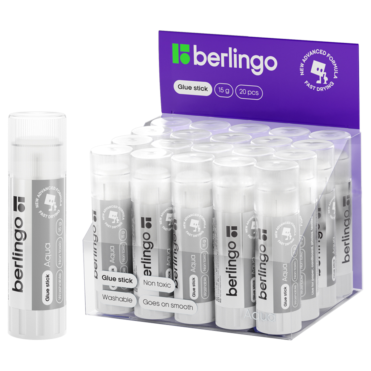 Клей-карандаш 15 г Berlingo «Aqua» прозрачный, ПВП