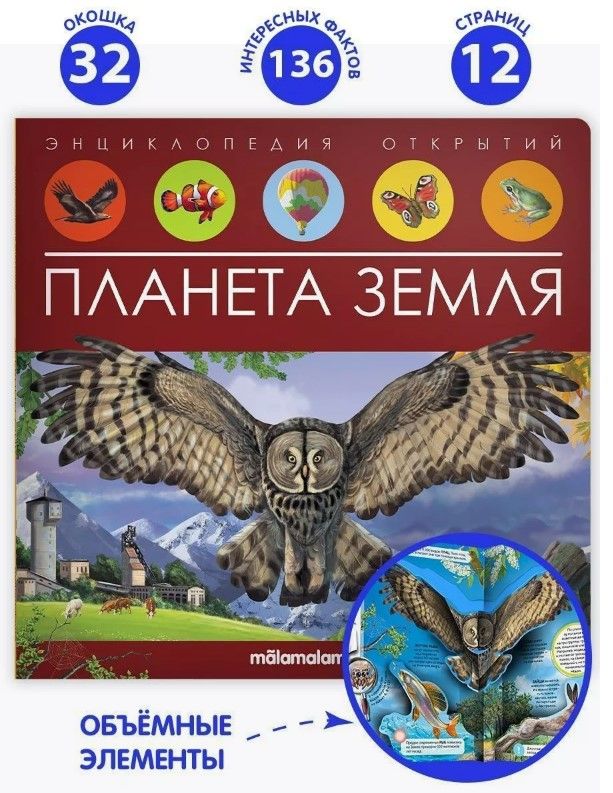 Книги из серии «Энциклопедия открытий» от торговой марки Malamalama — это настоящая сокровищница удивительных фактов и ответов на популярные вопросы маленьких почемучек. Книга «Планета Земля» рассказывает читателю об устройстве нашей планеты, о смене времён года и климатических поясах, о животном мире и подводных жителях. Объёмные POP-UP конструкции и красочные иллюстрации сделают изучение запоминающимся и лёгким.