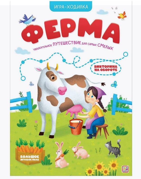 Игры-ходилки от торговой марки Malamalama — это весёлое и познавательное развлечение для малыша. Каждая книжка разворачивается в большой плакат, на одной стороне которого вы найдёте увлекательную настольную игру, а на другой — викторину с удивительными фактами. Вместе с игрой-ходилкой «Ферма» ребёнок отправится на весёлую прогулку по большому и шумному домашнему хозяйству. Продвигаясь вперёд по красочному игровому полю, малыш встретится с милыми животными, понаблюдает, как собирают урожай и ухаживают за садом и огородом. А на обороте будут ждать 36 интересных вопросов обо всём, что можно встретить на ферме. С этими вопросами ребёнок сможет проверить свои знания и расширить кругозор. Фишки и кубик включены в комплект — игра полностью готова к тому, чтобы подарить малышу множество весёлых моментов.