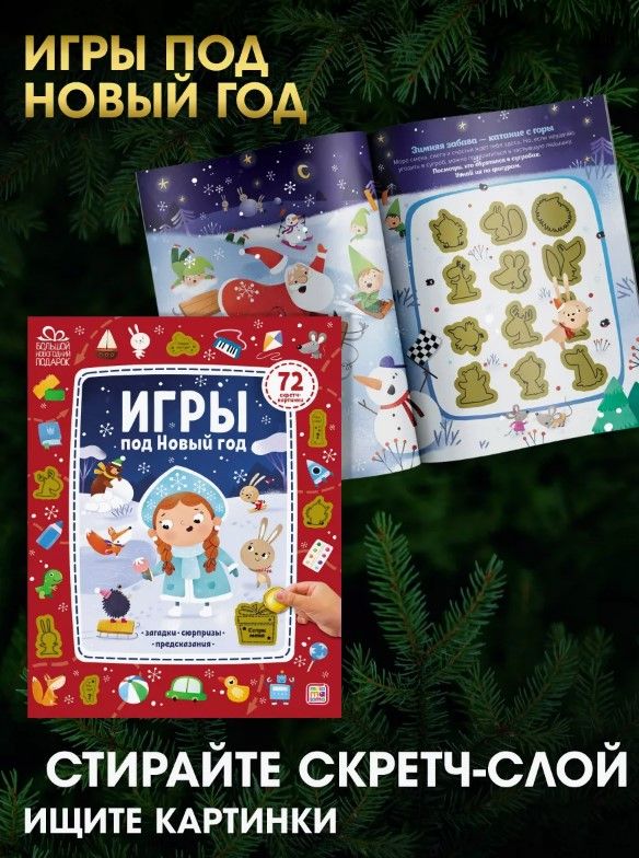 Книжка «Игры под Новый год» — отличный способ весело провести время в новогодние праздники! Внутри ребёнка ждут интересные загадки и игры со скретч-слоем. Открывая спрятанные под ним предметы, малыш почувствует себя настоящим волшебником! А сказочные зимние иллюстрации помогут создать праздничное настроение. Подарите своему малышу множество радостных моментов вместе с Malamalama!