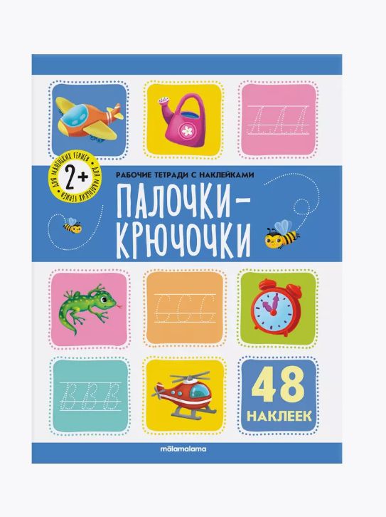 Книга-рабочая тетрадь с наклейками Палочки крючочки 2+