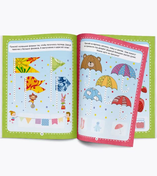 Малыш научится уверенно держать в руках ручку, смело проводить линию, подготовится к работе с прописями. Специальные наклейки разнообразят занятия простыми, но интересными заданиями на развитие логического, ассоциативного мышления.