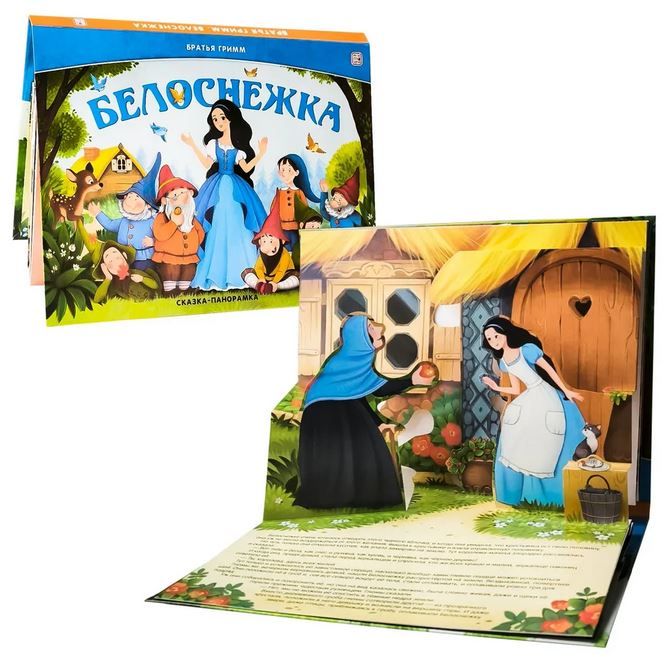 Сказка-панорамка «Белоснежка» от торговой марки Malamalama — это яркие объёмные иллюстрации и персонажи, которые оживают на ваших глазах.Любимая всеми история известных немецких сказочников Вильгельма и Якоба Гримм о принцессе Белоснежке, злой королеве и семи гномах предстанет перед вашим малышом в завораживающем красочном оформлении. Ребёнок сможет окунуться в неповторимую атмосферу сказочного леса и словно наяву встретиться с волшебными персонажами.Читайте сказку-панорамку «Белоснежка» — отправляйтесь в незабываемое приключение!