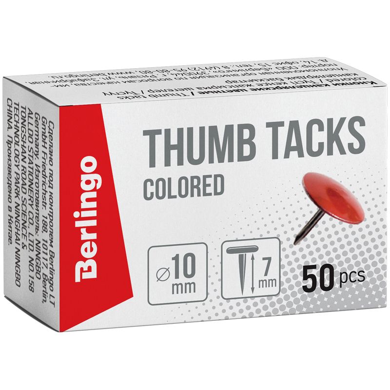 Кнопки канцелярские/гвоздики Berlingo, цветные 10мм, 50шт., карт. упак.