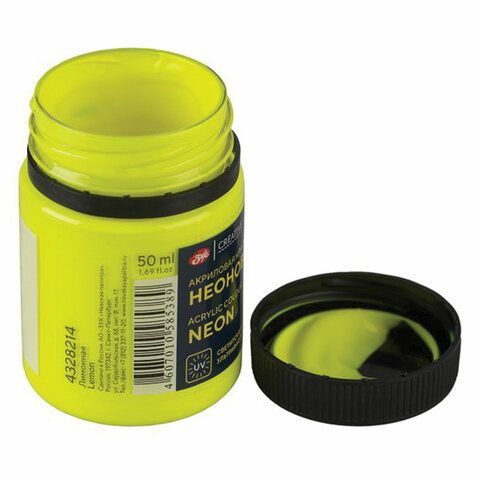 Краска акриловая 50 мл, флуоресцентная «Декола», банка, лимонная, 4328214