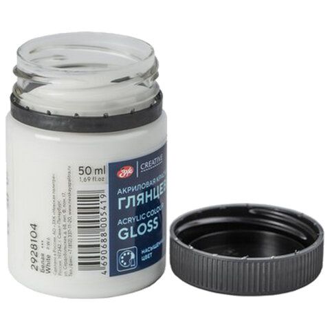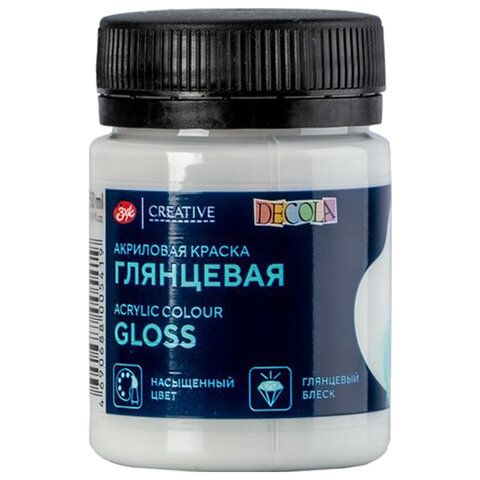 Краска акриловая 50 мл, глянцевая «Декола», банка, белая, 2928104