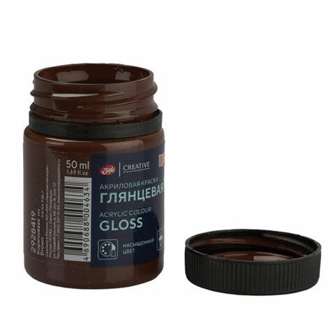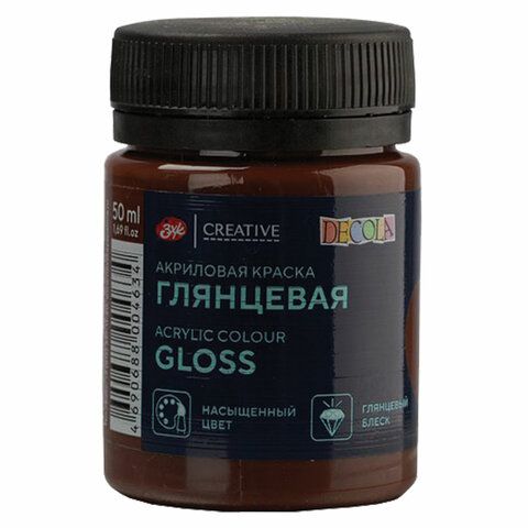 Краска акриловая 50 мл, глянцевая «Декола», банка, коричневая, 2928419