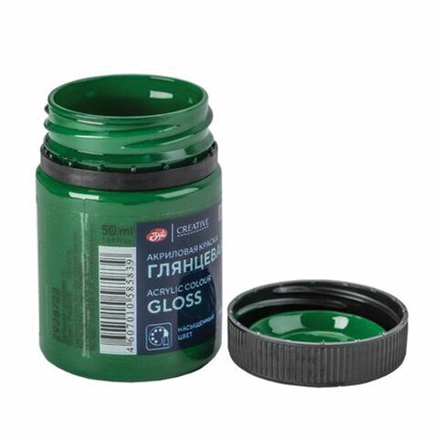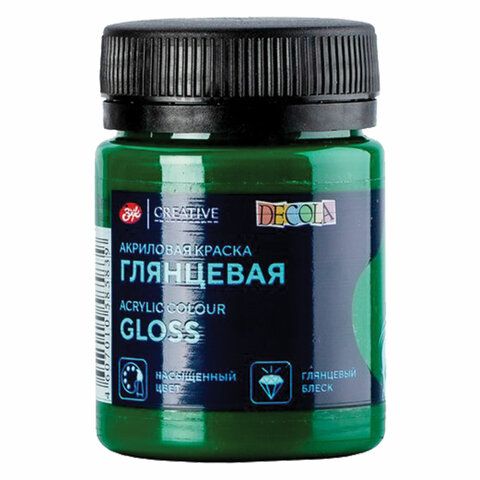Краска акриловая 50 мл, глянцевая «Декола», банка, зеленая средняя, 2928722