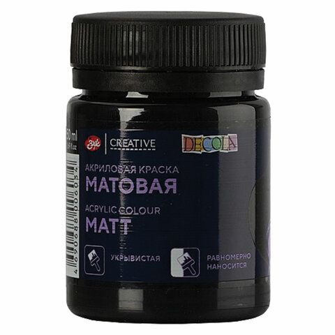 Краска акриловая 50 мл, матовая «Декола», банка, черная, 14328810