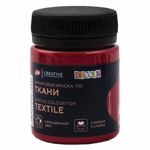 Краска акриловая по ткани 50 мл. «Декола», банка, карминовая, 4128319