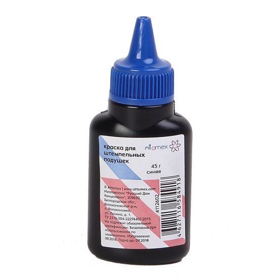 Краска штемпельная 45 мл. Attomex основа водная, цвет чернил синий
