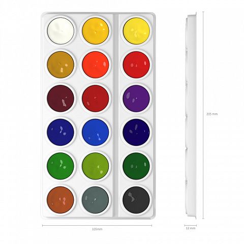 Классические акварельные полусухие краски ErichKrause в облегченной пластиковой палете представлены в картонной упаковке с европодвесом. Линия отреза снабжена перфорацией, которая позволяет быстро и легко удалить держатель и разместить краски в горизонтальном положении на столе, что удобно при непосредственном использовании.