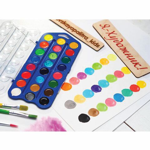 Краски акварельные 24 цвета «Я - Художник!», медовые, круглые кюветы, 227421539