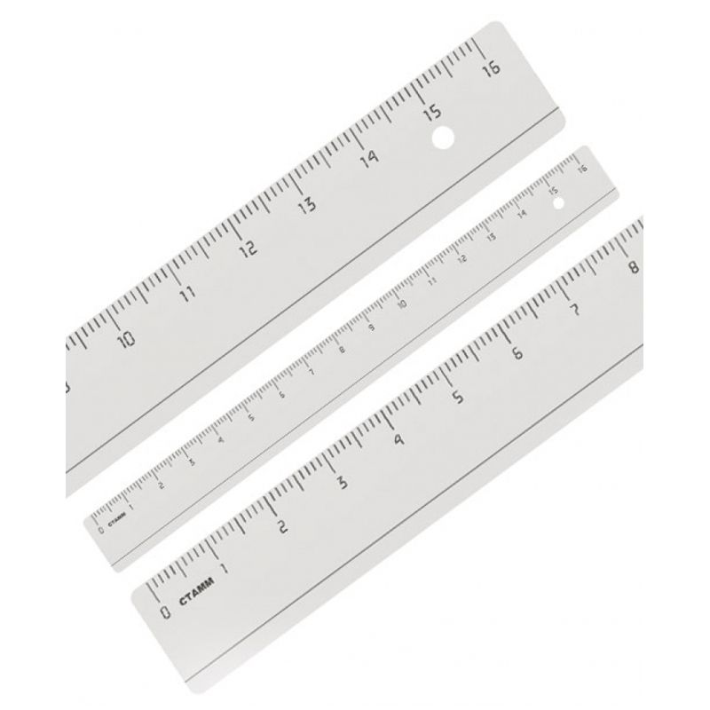 Линейка 16см с ровной чёткой миллиметровой шкалой. Безопасные закруглённые углы. Прозрачная бесцветная. Штрихкод на единице изделия.