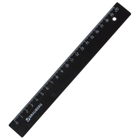 Линейка 20 см BRAUBERG, непрозрачная, черная, 210607
