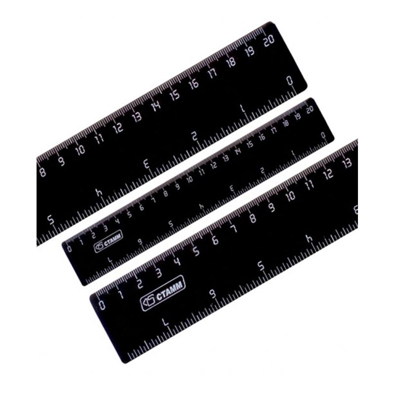 Линейка 20см СТАММ, широкая, 2 шкалы (см - дюймы), пластиковая, черная