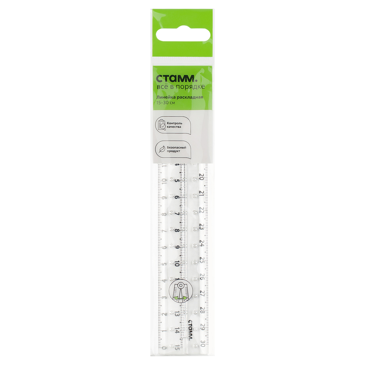 Линейка раскладная 15-30см СТАММ, пластиковая, прозрачная, европодвес