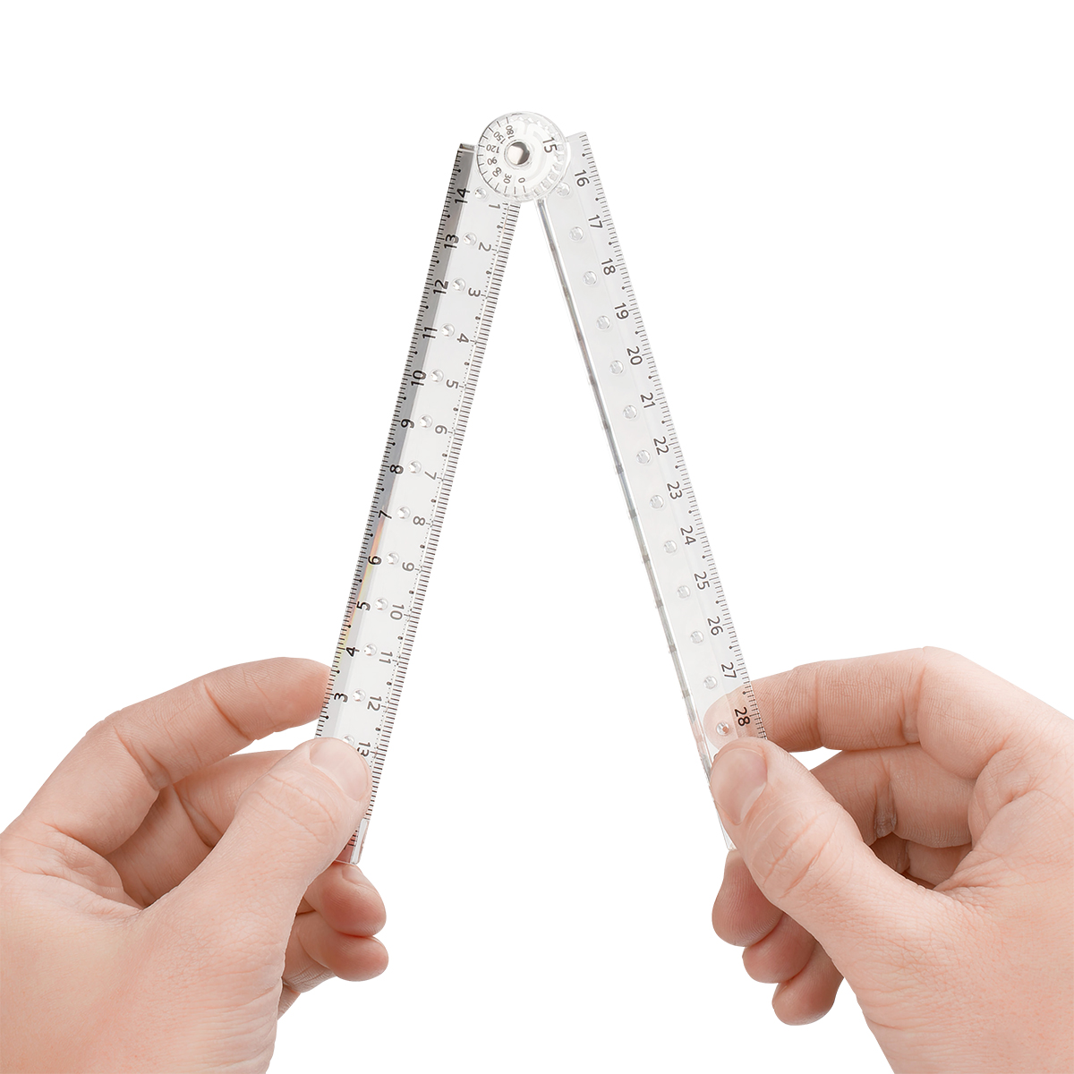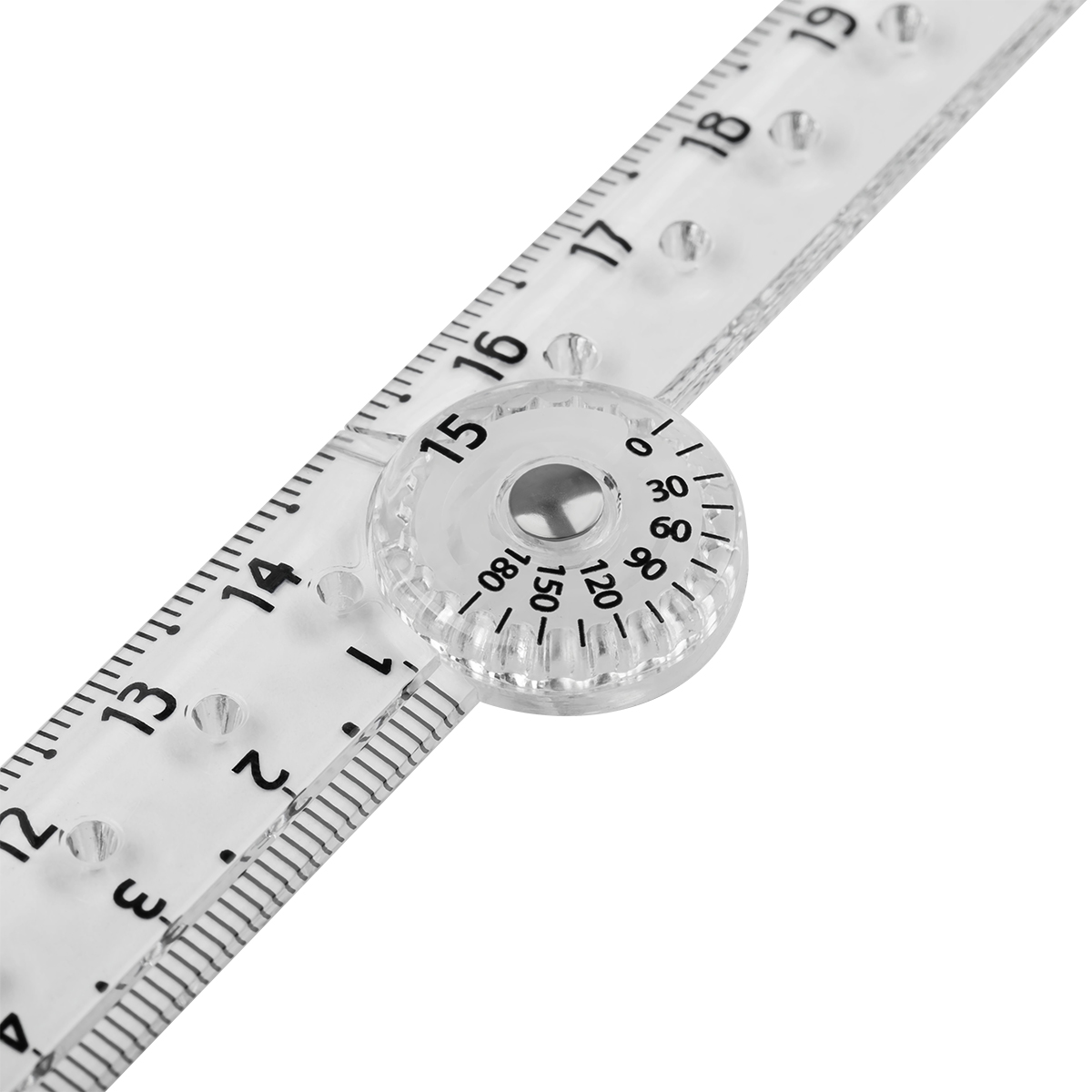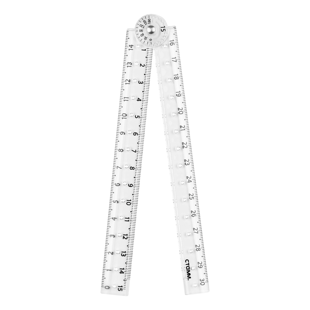 Линейка раскладная «СТАММ» предназначена для чертежно-измерительных работ. Длина шкалы варьируется от 15 см до 30 см, ширина линейки – от 1,5 см до 3 см. У изделия четкая контрастная миллиметровая шкала. Представлено со встроенным транспортиром. Линейка изготовлена из качественного полистирола и имеет гладкую глянцевую поверхность. Упакована в пакет с европодвесом. Цвет изделия – прозрачный.