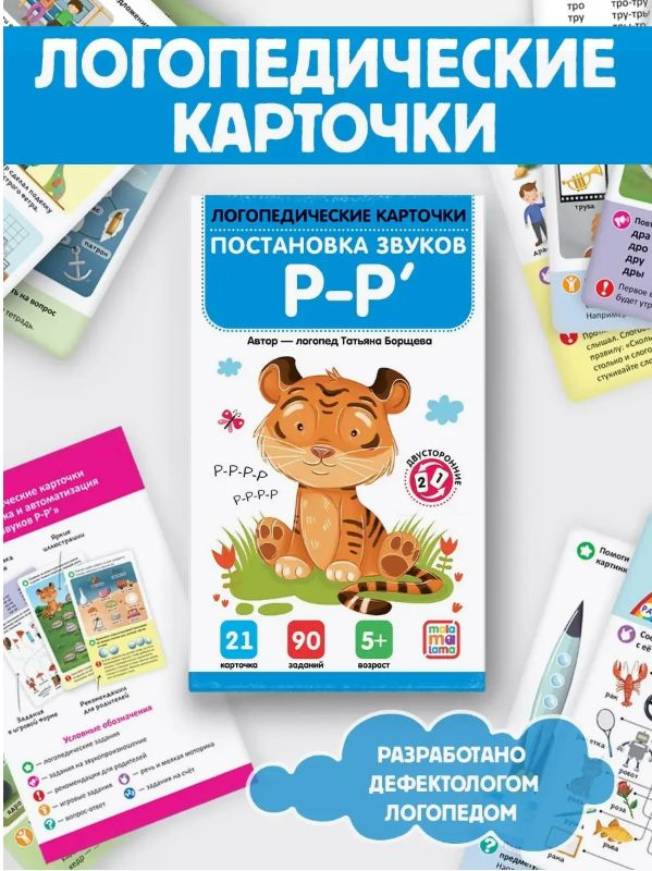 Набор иллюстрированных логопедических карточек «Постановка и автоматизация звуков Р-Р'» от торговой марки Malamalama — отличный тренажёр для развития речи детей. На карточках вы найдёте упражнения и игры, которые помогут отработать и автоматизировать произношение звуков Р и Р' в слогах, словах и предложениях. Все задания составлены практикующим логопедом Татьяной Борщевой.