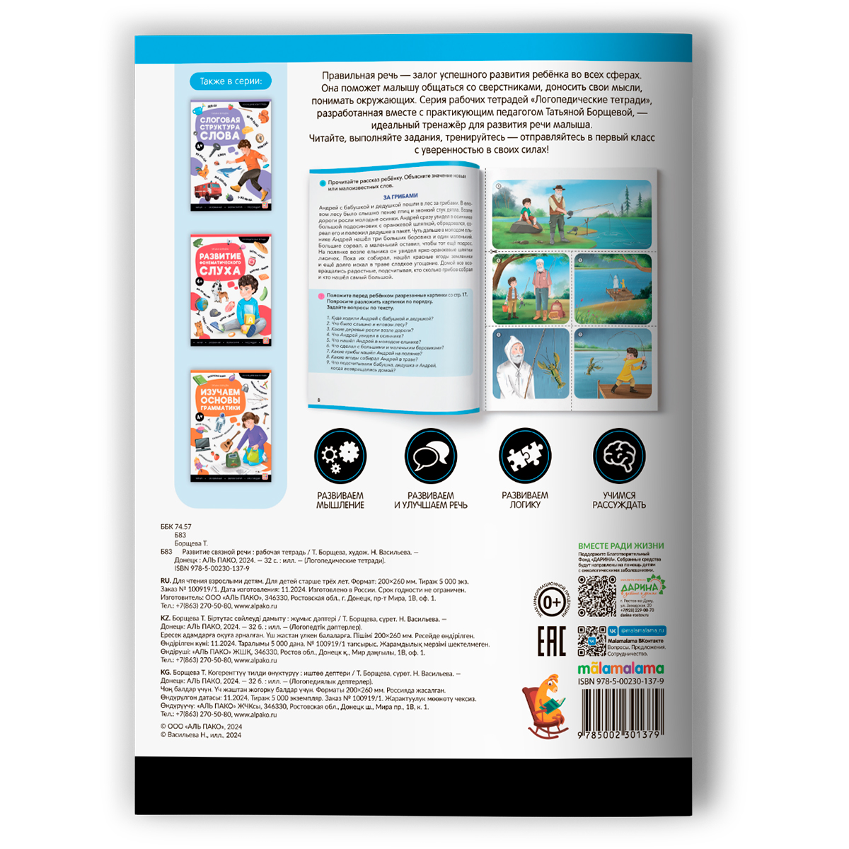 Тетради соответствуют требованиям безопасности продукции. С их помощью ваш ребёнок сможет расширить словарный запас, научиться строить предложения и составлять рассказы. Это поможет ему лучше понимать окружающий мир и успешно общаться с другими людьми.