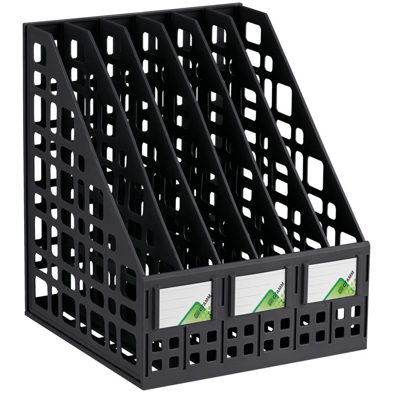 Лоток для бумаг вертикальный 6 секций сборный черный СТАММ