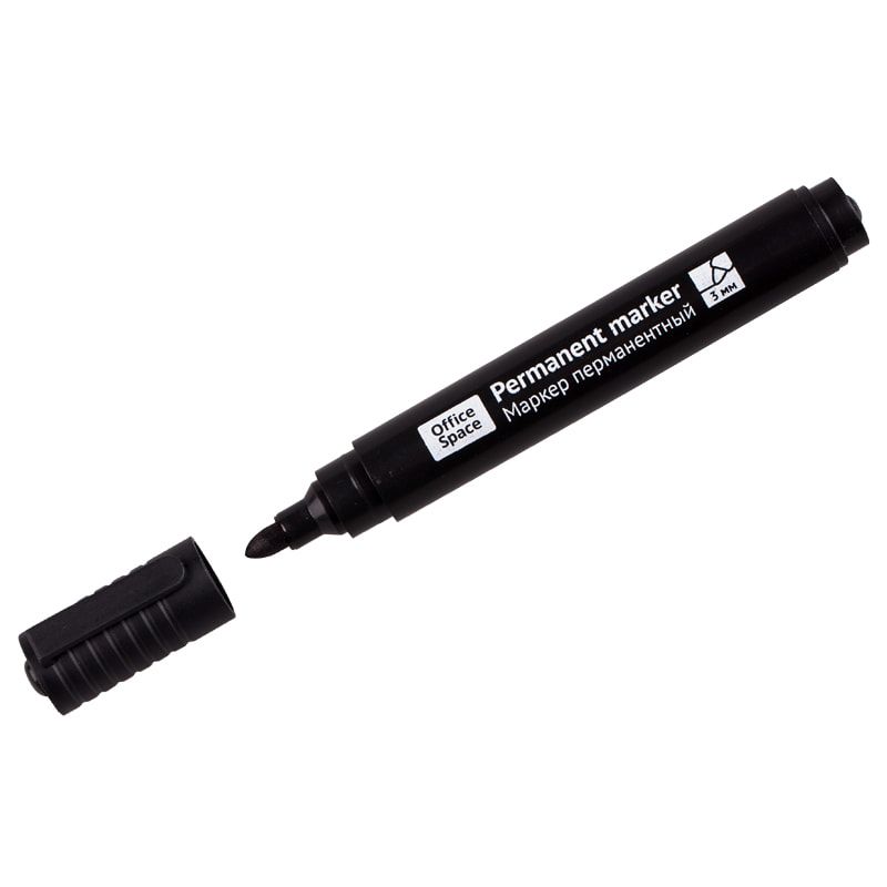 Маркер перманентный (нестираемый) OfficeSpace «8004А» черный, пулевидный, 3мм