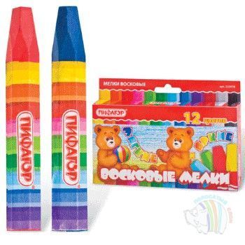 Мелки восковые 12 цв.ПИФАГОР на масляной основе, яркие цвета