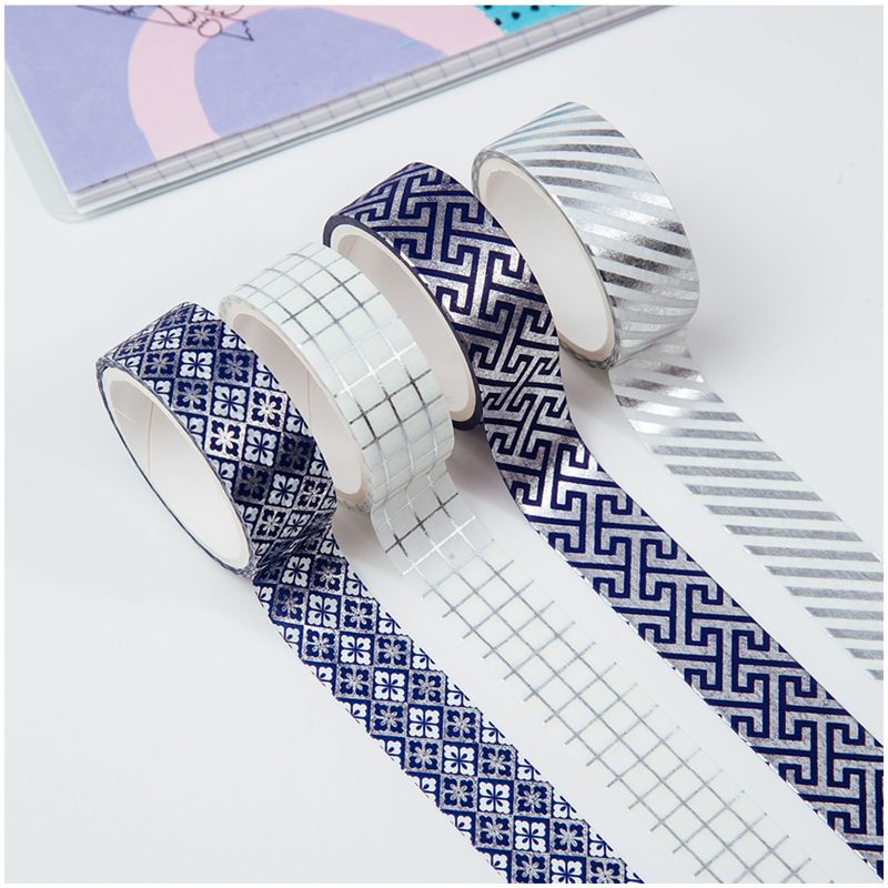 Набор клейких декоративных лент MESHU «Silver shinet», 4шт