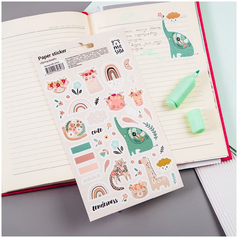 Бумажные наклейки MESHU Spring breath – отличный помощник в креативном оформлении записей в блокнотах и дневниках.